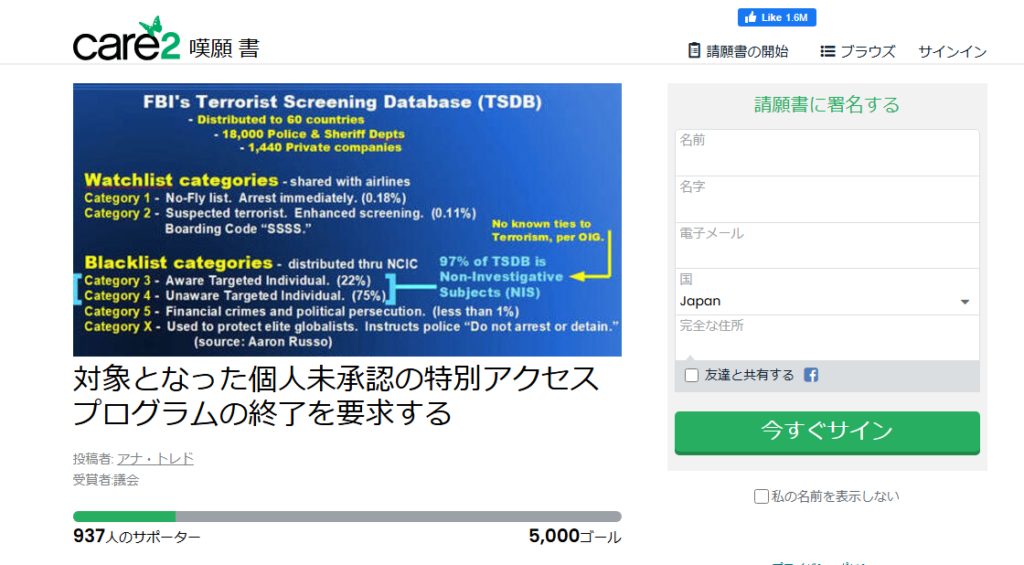 Targeted Justiceは連邦政府と訴訟をしています。直近の裁判では負けているようです:内容-世界中のTIメンバーをリスト(FBIのテロリストスクリーニングセンターのテロリストスクリーニングデータベース-リスト)から外す訴訟